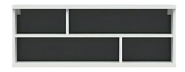 Moderní závěsná police se čtyřmi otevřenými zásuvkami, které na první pohled zaujmou svým asymetrickým uspořádáním. Závěsnou polici můžete využít jako originální místo pro svou sbírku knih a suvenýrů. Barevné provedení bílého lesku s prvky černé a asymetrické tvary police z ní činí ideální doplněk do Vašeho moderního interéru. Aby toho nebylo málo, tak díky vrchní desce s vysokou nosností můžete využít ještě dodatečný prostor.