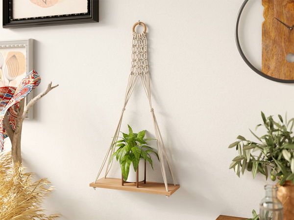 ZobrazitDodejte svému domovu jemný boho nádech se stylovou závěsnou policí Kevarra 1. Jedinečný design je doplněn o zapletenou šňůrku, která jí dodává osobitý vzhled, ideální pro styling inspirovaný přírodou a ruční prací. Závěsná police umístěná na stěně je perfektním místem pro odkládání drobností, dekorací nebo hrnkových rostlin. Jednoúrovňový design navíc umožňuje jednoduchou organizaci a přístup k vašim oblíbeným položkám. Díky své funkčnosti je ideální pro různé místnosti v domě.