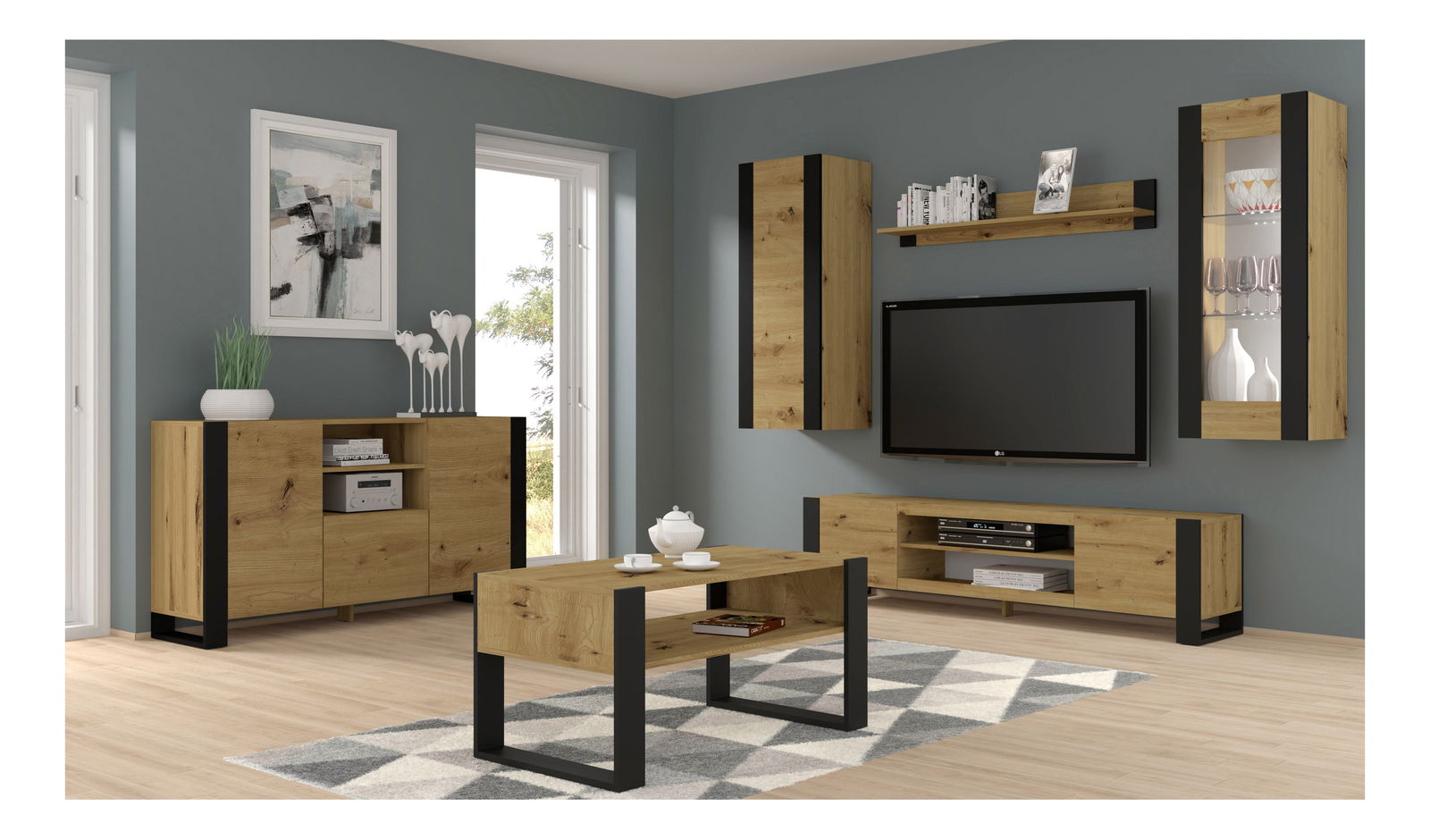 Závěsná skříňka Montana (dub artisan + matná černá)
