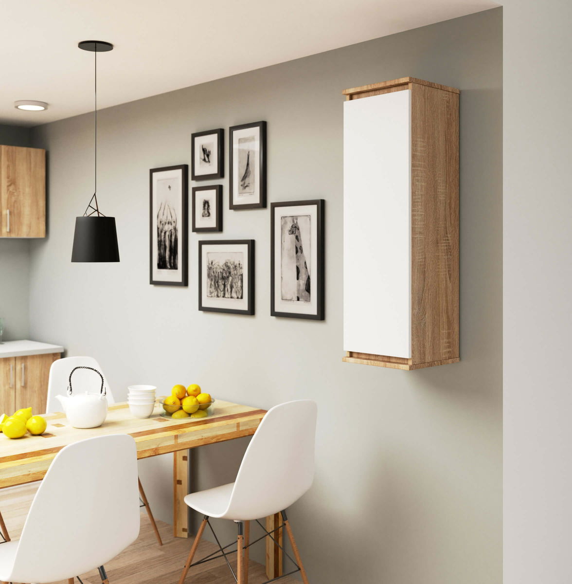Závěsná skříňka Wren (dub sonoma + bílá)