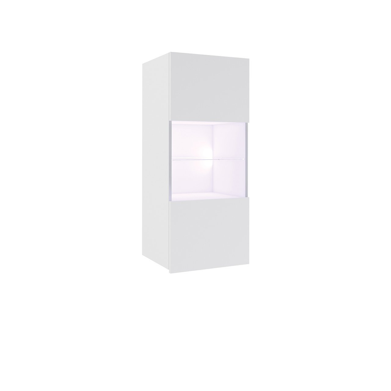 Závěsná vitrína Brolani BR05 je prostorově úsporná a překvapí moderním vzhledem. Je dostatečně univerzální, aby vám poskytla příležitost vytvořit spoustu možných uspořádání nábytku ve vašem obývacím pokoji - můžete ji pověsit kdekoli chcete. Neobvyklé přední části vitríny, vyrobené v lesklém provedení, opticky zvětšují prostor i díky hře světla a stínu, do které se zapojuje také skleněná police. Hluboké police poskytnou možnost k udržení dokonalého pořádku v obýváku.