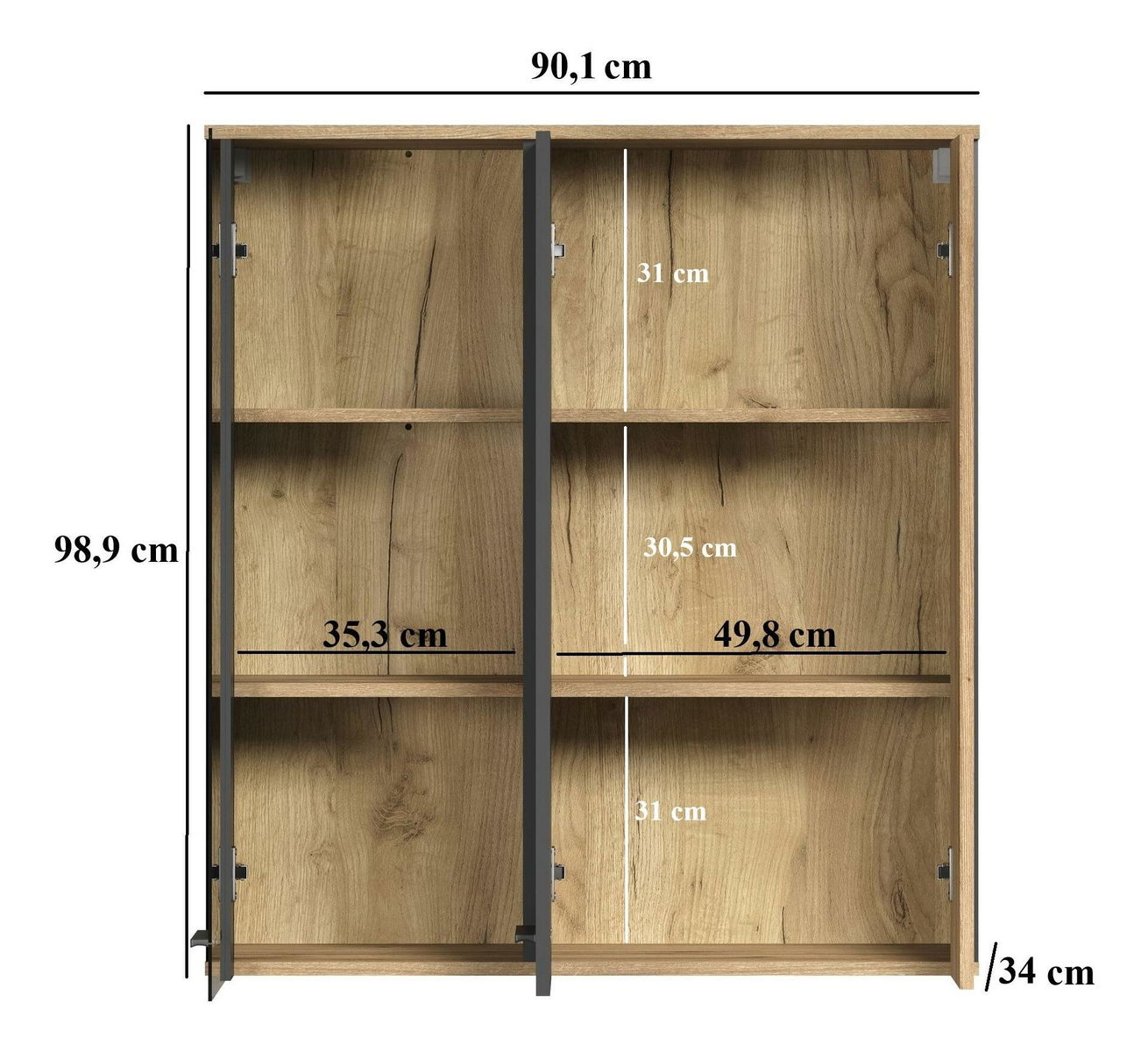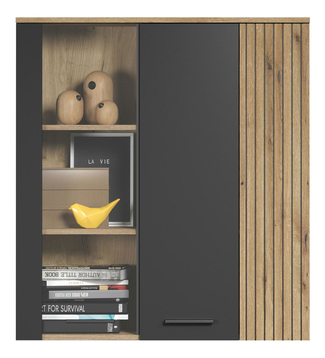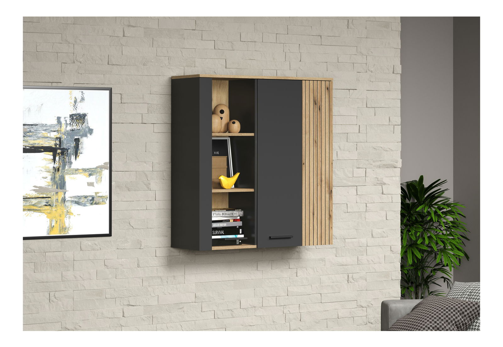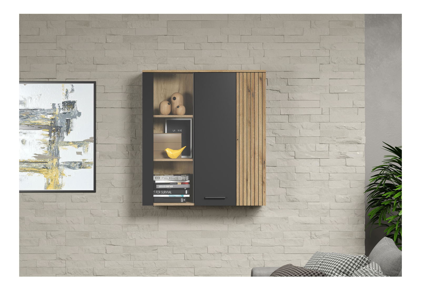 Závěsná vitrína Esferas (grafit + dub evoke)
