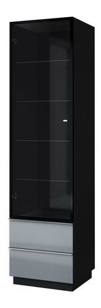 Moderní vitrína s prosklenými dvířkami a dvěma zásuvkami ve spodní části. Úložný prostor je rozdělen policemi. Elegance, lesk a moderní design najdete v série Henry. Nabízíme v trojím provedení bílá, šedá a černá. Vhodné do malých i velkých prostor. Nabízíme k dokoupení LED osvětlení.