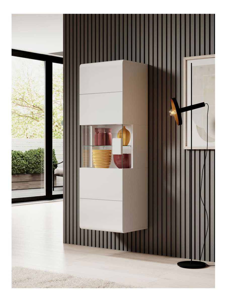 Závěsná vitrína vysoká Tamie Typ 07 (bílá + lesk bílý) (L)