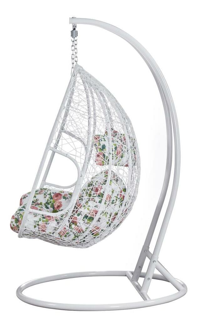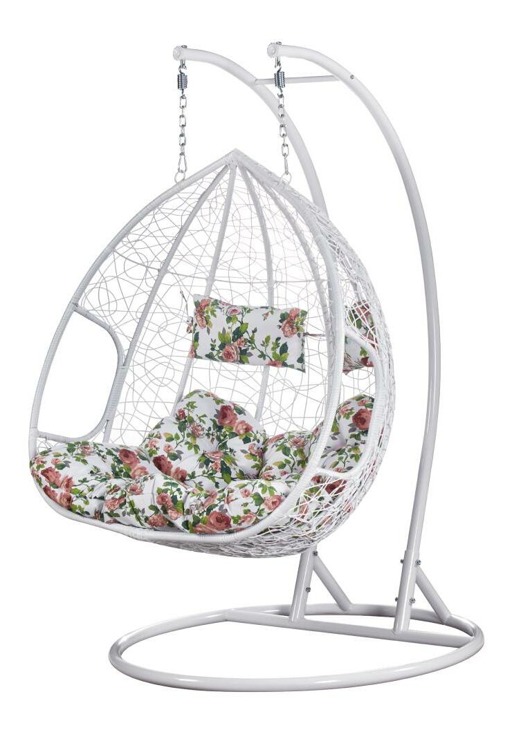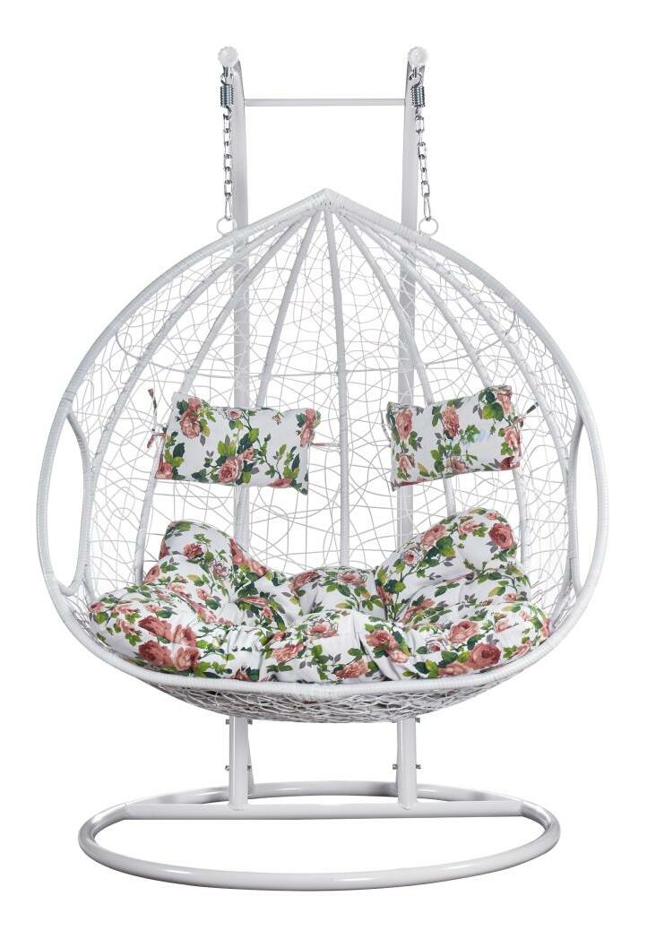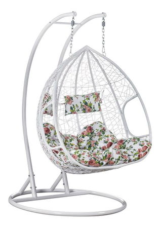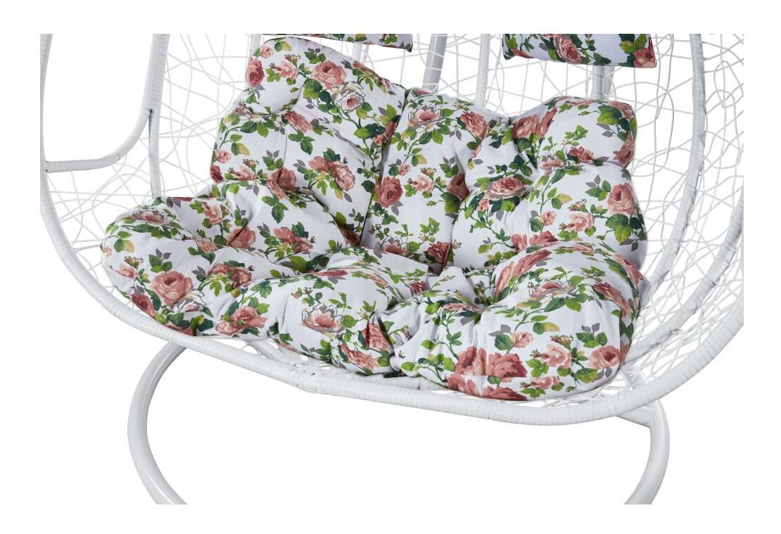 Závěsné dvojkřeslo Deber (bílá + vzor květiny)