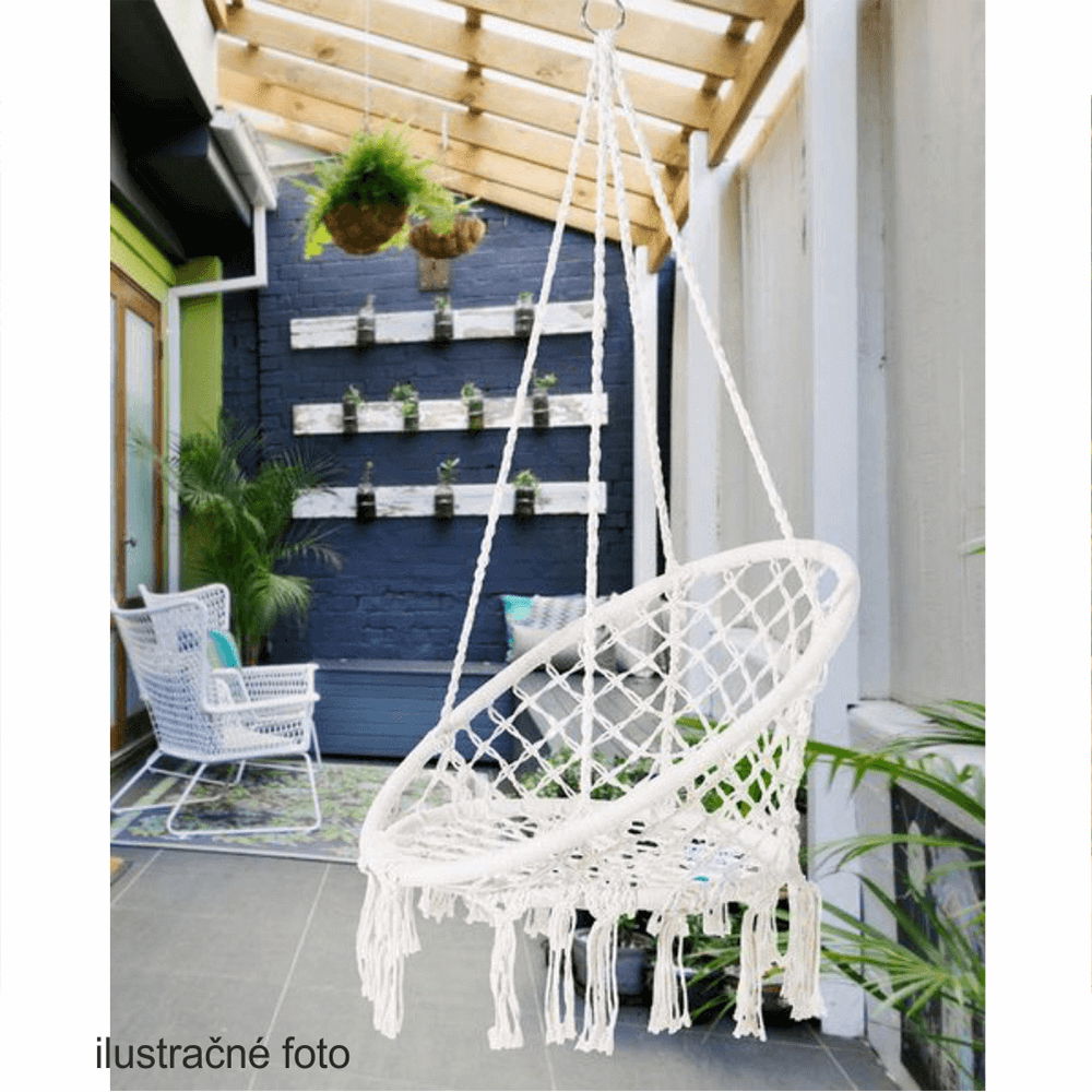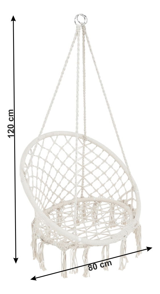Závěsné houpací křeslo Amarea (bílá) o výšce 120 cm je ideální volbou pro tiché a pohodlné oddychování v každém volném okamžiku. Křeslo Amarea je dokonalým místem k relaxaci, které si můžete užívat doma i venku. Jeho pevná kovová konstrukce a čtyři závěsná lana zajišťují bezpečnou podporu vašeho těla a umožňují vám se pohodlně houpat v každém směru. Bavlněný výplet v bílé barvě dodává tomuto křeslu něžnost, hravost a estetičnost. Výplet je vyroben z bavlny a polyesteru a je velmi pohodlný. S nosností až 120 kg, je vhodné pro téměř každého. Křeslo Amarea je ideální pro ty, kteří hledají dokonalý kousek nábytku k relaxaci. Upozornění: Stojan není součástí balení. Doporučujeme zakoupit stojan na zavěšení křesla, který naleznete na naší webové stránce.