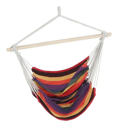 Závěsné houpací křeslo Gilda (bílá + vzor pásek) je ideální pro ty, kteří se chtějí pohodlně zrelaxovat v interiéru nebo exteriéru. Křeslo je vyrobeno z kvalitní látky složené z 65% bavlny a 35% polyesteru. Jeho nosnost až 120 kg zajišťuje bezpečný pocit při relaxaci. Všimněte si, že stojan není součástí balení, ale můžete si jej dokoupit zvlášť. Křeslo je dodáváno v demontu, ale jeho sestavení je jednoduché. Toto křeslo v bílém provedení s páskovým vzorem a výškou 130 cm je skvělou volbou pro pohodlné sezení a relaxaci po náročném dni.