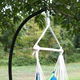 Závěsné houpací křeslo Gilda je stvořeno k odpočinku a relaxaci v horkých letních dnech či večerech. Radost vám neudělá jen ven na zahradě, těšit se z něj můžete iv obývacím pokoji, ložnici či na balkoně. Je vyrobeno z příjemného textilního materiálu bavlna a polyester. Možnému předraní látky zabraňuje speciální obšití a velký počet šňůrek zajišťuje ideální rozklad váhy pro pohodlné sezení. Není jen účelové, ale také moderní, v barevné kombinaci bílá a modro-zelený páskový vzor. Se závěsným houpacím křeslem Gilda zjistíte, že relax na houpačce je nakažlivý a nebudete ho mít nikdy dost.