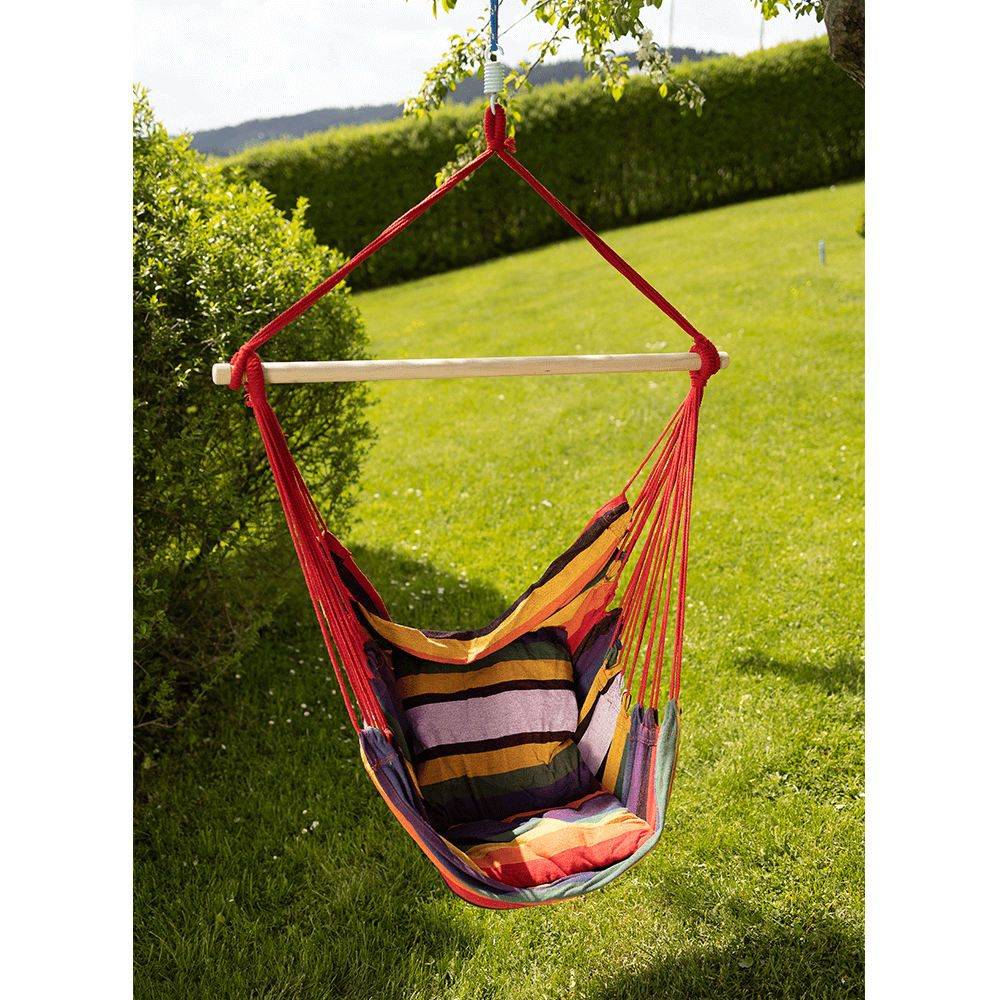 Speciálně obšitéS dřevěnou rozpěrnou tyčíSoučástí i dva polštářeVhodné do interiéru i exteriéruStojan není součást balení, můžete si doobjednatDodáváno v demontu