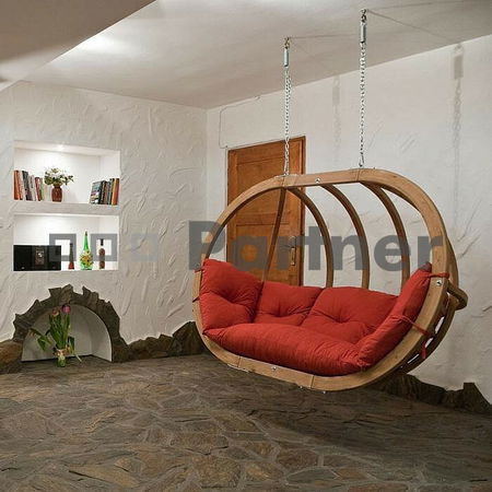 Moderní zahradní houpačka navodí romantickou atmosféru v interiéru, na verandě, v altánku, zimní zahradě nebo podkroví. Masivní polokulovité konstrukce je zavěšena na pevných řetězech, které pomocí háků upevníte do stropu. Ty zaručují stabilitu a bezpečnost. Je vyrobena z lepených vrstev borovicového dřeva, které je impregnované pro delší trvanlivost. Perfektně se hodí pro odpočinek dvou osob. K houpačce je i kvalitní a pohodlný matrace ze 100% bavlny v barvě terakotta. Pro snadnější údržbu je opatřen zipem, čímž sundáte obal a jednoduše operetě.