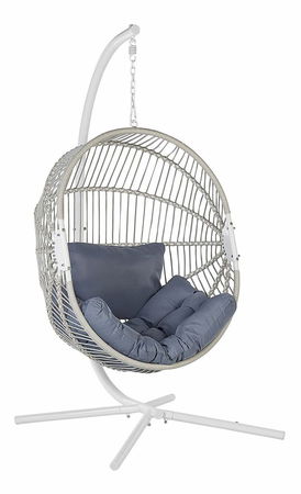 Vytvořte si doma skutečnou relaxační oázu s tímto závěsným křeslem. Je vyrobeno z pevného umělého ratanu, má kovový stojan a pevnou konstrukci a můžete jej umístit do interiéru, ale také na zahradu a terasu. Součástí křesla jsou také hrubé polštáře na sedák a opěradlo, díky kterým se stane dokonalým místem k odpočinku. Krásný boho design činí z tohoto křesla ideální doplněk do interiéru zařízeného v přírodním stylu, ale i do jakéhokoli venkovního prostoru. Pohodlně se usaďte, zavřete oči a relaxujte.