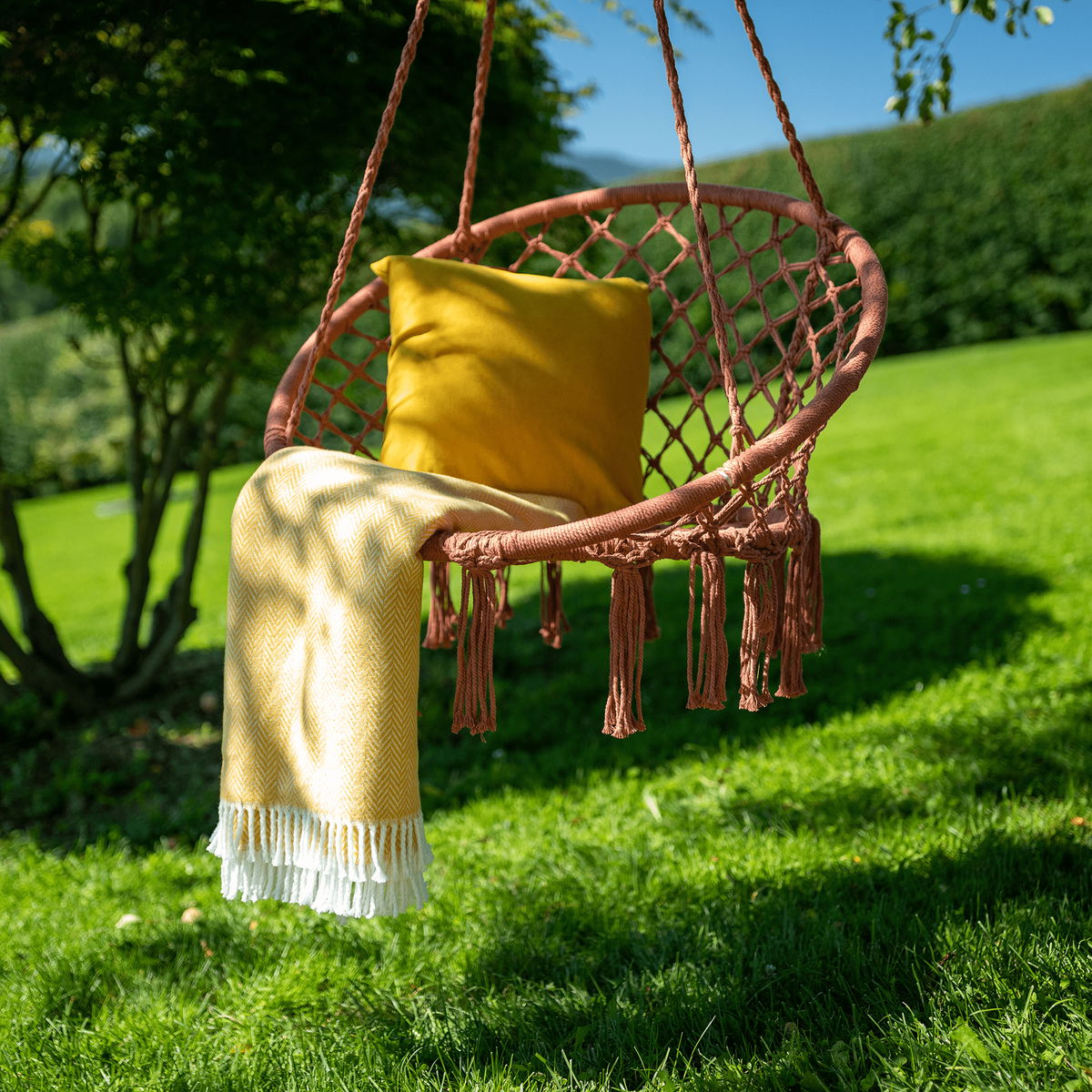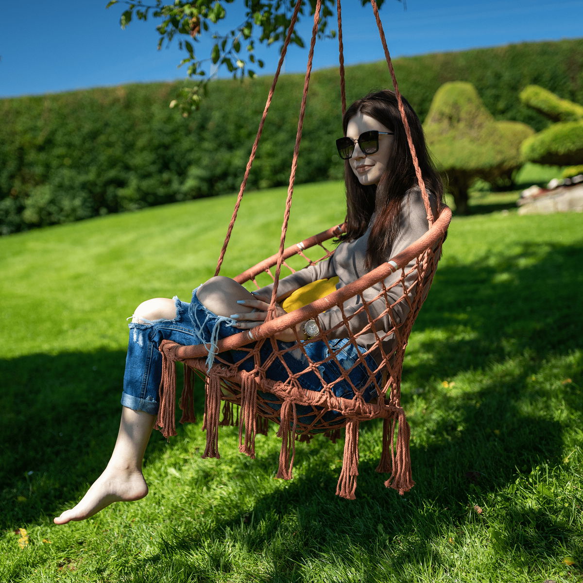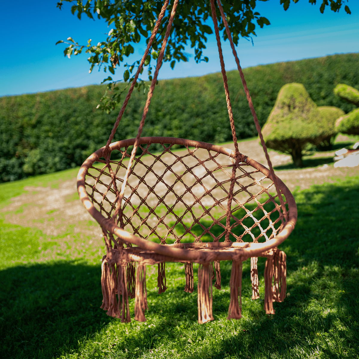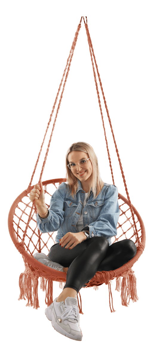 Amari je houpací křeslo, které můžete použít v interiéru i exteriéru. Základ tvoří pevný kovový rám, ke kterému se upevní čtyři závěsná lana. Samotná kovová konstrukce by vám neposkytla žádné pohodlí, bavlněný výplet v bílé barvě dodá křeslu nádech něžnosti, hravosti a estetičnosti. Výplet je z bavlny a polyesteru bílé barvy. Amari s nosností do 120 kg je určeno téměř pro každého.