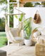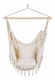 Hezké a funkční závěsné křeslo bude dokonalým doplňkem terasy, balkonu nebo obývacího pokoje. Sedadlo vyrobené z pevné a kvalitní látky je doplněno vkusnými třásněmi, které mu dodávají bohémský nádech. Na jedné straně je malá kapsa ideální pro odložení brýlí nebo knihy. Spolu s přiloženými polštářky vytváří skvělé místo pro čtení a relaxaci. Křeslo se dodává kompletně smontované, zabalené v látkovém sáčku a připravené k použití.