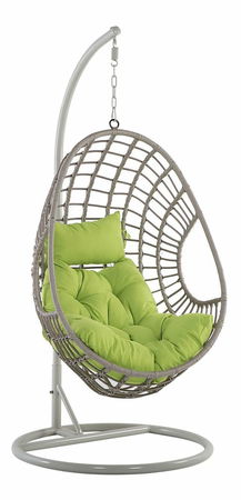 Toto závěsné houpací křeslo, které je přímo stvořeno k odpočinku, je dokonalou kombinací vintage stylu a moderního designu. Vyznačuje se tím, že nabízí výjimečné pohodlí. Křeslo je zavěšeno na samostatném stabilním stojanu, který vám umožní umístit jej do kterékoli místnosti v domě nebo zimní zahrady. Výplet z pevného umělého ratanu působí vzdušně a zároveň útulně. Součástí křesla je hrubý, prošívaný polštář k sezení a malý polštářek za hlavu v osvěžujícím odstínu zelené barvy.