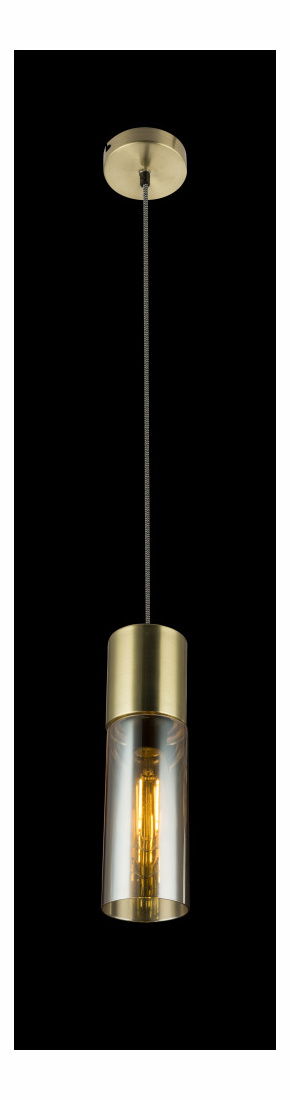 Závěsná lampamosazná matná, sklo jantarové, textilní kabel hnědý,D: 105,H: 1525,bez 1xE27 25W 230V