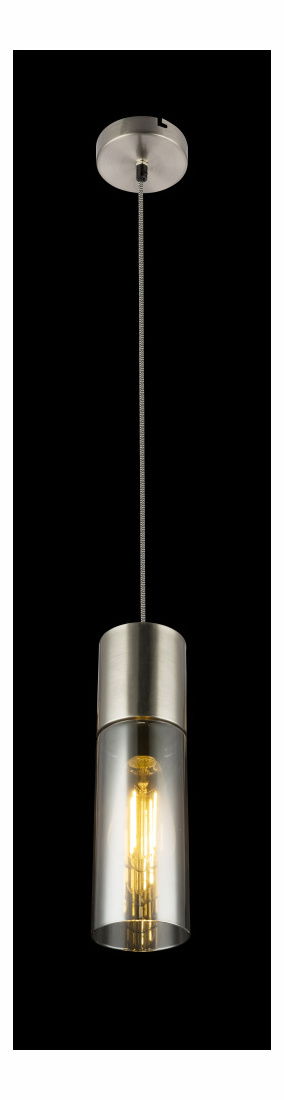 Závěsná lampaniklová matná, kouřové sklo,textilní kabel černobílý,D: 105,H: 1525,bez 1xE27 25W 230V