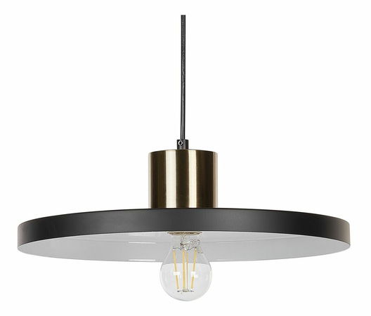 Vstupte do světa moderního designu s elegantním závěsným svítidlem. Tento úžasný kousek s lehkostí spojuje moderní estetiku s industriálním stylem. Kovové stínítko v elegantní černé barvě působí výrazně a zajímavě, zatímco mosazný barevný prvek v horní části lampy vytváří elegantní kontrast. Design s odhalenou žárovkou poskytuje dostatečné osvětlení pro prosvětlení celé místnosti. Vylepšete svůj interiér tímto moderním kouskem, který je dokonalým spojením stylu a funkčnosti.