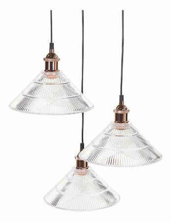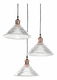 Moderní závěsná lampa v designu, který vnese vintage styl přímo do vašeho obývacího pokoje, jídelny nebo ložnice. Široká skleněná stínítka se nádherně propojují s měděnými detaily, přičemž lampa je ideální pro použití s dekorativními žárovkami. Svítilna je vhodným doplňkem do industriálních, eklektických nebo venkovem inspirovaných interiérů.