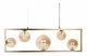 Nechte se okouzlit půvabem elegantní závěsné lampy, která spojuje sofistikovaný design s uměleckým provedením. Lesklý kovový rám v mosazné barvě doplňuje pět kulatých skleněných stínítek v různých velikostech. Pokud hledáte stylové svítidlo do interiéru, které se stane středobodem místnosti, tato závěsná lampa bude vynikající volbou.