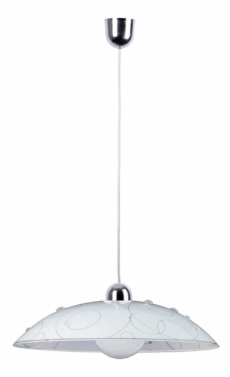 Závěsné svítidlo Jolly 1864 s bílým vzorem a chromovými úchyty je moderní a elegantní kousek pro váš domov. dodává svítidlu jemnost a stylový vzhled. být zavěšeno díky svým rozměrnostem na jakémkoli místě v místnosti a bude dokonale zapadat do vašeho interiéru. Všechny potřebné součástky jsou součástí balení pro jednoduchou a rychlou instalaci. .
