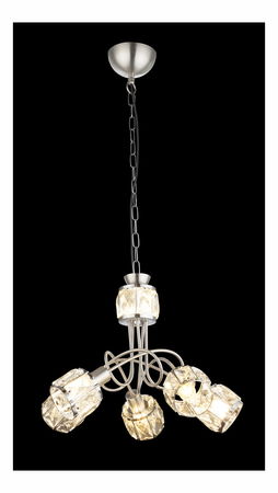 Závěsné svítidlonikl, chrom, sklo,D: 400,H: 1300,bez 5xE14 40W 230V, 230V, 1xLED 5W 305lm, 3000K.