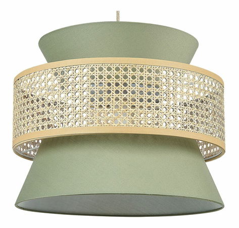 Zkrášlete svůj interiér pomocí této výjimečné závěsné svítilny. Tato jedinečně tvarovaná lampa ve stylové zelené barvě krásně doplní design vašeho obývacího pokoje nebo jídelny. Boho prvky v podobě ratanového detailu a pleteného kabelu doplňují přírodní design lampy. Délku kabelu lze navíc upravit podle potřeby.