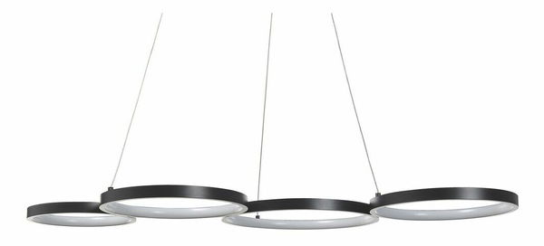 Dodejte svému obývacímu pokoji, ložnici nebo jídelně minimalistický prvek v podobě této krásné lampy. Skládá se ze 4 kruhových prstenců, z nichž každý je vybaven LED světlem, takže si nemusíte dělat starosti se žárovkami. Díky svému jednoduchému tvaru a klasické černé povrchové úpravě bez problémů zapadne do každého moderního interiéru. Lampa se dodává s horním krytem, takže kabely snadno skryjete.