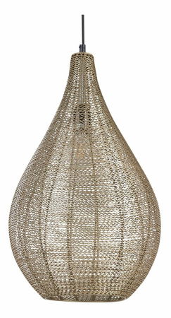 Vstupte do království elegance s naší kovovou závěsnou lampou, která představuje dokonalé spojení uměleckého zpracování a funkčnosti. Lampa se může pochlubit podmanivým oválným stínítkem se složitou strukturou v zářivém mosazném odstínu. Je precizně vyrobená a stane se elegantním středobodem prostoru, který jistě upoutá pozornost každého. Vylepšete zařízení interiéru tímto okouzlujícím kouskem s nádherným designem.