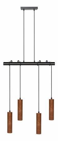 Zkrášlete vzhled svého interiéru a rozzařte jej pomocí této závěsné lampy se 4 světly. Největší předností tohoto kousku jsou jeho stínítka vyrobená z tmavého dubového dřeva, která zaručeně upoutají pozornost vašich hostů a v místnosti vytvoří příjemnou záři. Základna je vyrobena ze železa, takže tento doplněk nevyžaduje každodenní údržbu k tomu, aby vydržel dlouhá léta. Celkový design lampy nejlépe vynikne v moderních interiérech, ale rovněž skvěle bude vypadat i v prostorách laděných ve stylu retro.