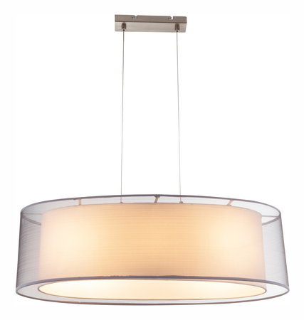 Závěsné svítidlonikl matnýplasttextilie šedásatinovaný akrylvýška stínítka 20 cmDxŠxV: 650x250x1400bez 3xE27 60W 230V.