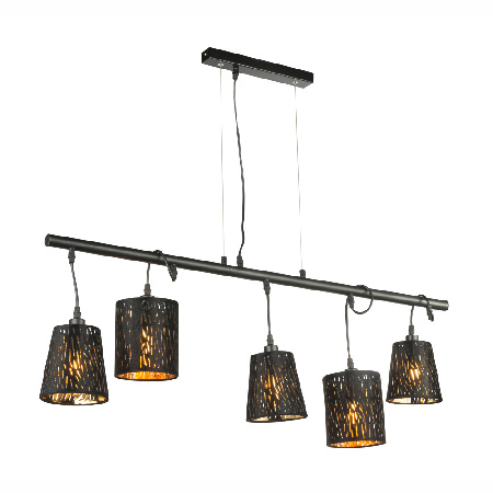 Závěsné svítidlo,černý lehký kov,černý samet,s nastavitelným kabelemdxšxv: 1000x130x1400,bez 5xE14 25W 230V.