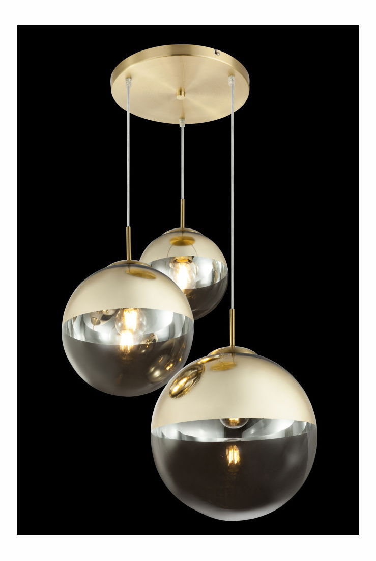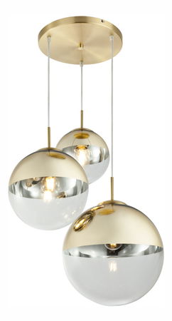 Závěsné svítidlo Varus 15855-3 je moderní a designové osvětlení, které vynikne v každém interiéru. Je vyrobeno z kovu s pozlacením ve zlaté barvě, která dodává luxusní vzhled. Toto svítidlo je vybaveno třemi koulemi vyrobenými z čirého skla s průhledným povrchem as průměrem 20, 25 a 30 cm. Celkový průměr závěsného svítidla je 510 mm a výška je 1200 mm. Tento produkt neobsahuje 3 žárovky E27 o výkonu 40 W a napětí 230 V, které si můžete zakoupit samostatně. Závěsné svítidlo Varus 15855-3 je ideální volbou pro ty, kteří hledají elegantní a sofistikované osvětlení pro svůj domov nebo kancelář.