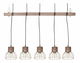 Vstupte do okouzlujícího světa rustikálního designu s touto výjimečnou závěsnou lampou. Toto podmanivé mistrovské dílo se pyšní dřevěným nosníkem, na kterém je elegantně zavěšeno pět svítidel. Každé z nich zdobí elegantní kovové stínítko v mosazném provedení. Zkrášlete si interiér uměleckým spojením rustikálních prvků a moderního designu, které vnese do každého koutu vašeho domova nádech nostalgie a sofistikovanosti.