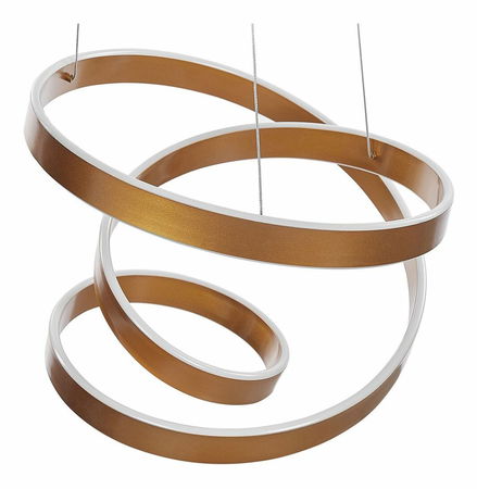 Tato elegantní a elegantní závěsná lampa se jistě hodí do každého interiéru, moderního nebo glam. Je vyroben z lehkého hliníku ohýbaného do složité spirály pro luxusní vzhled. Kousek se může pochlubit teplým zlatým povrchem, který zvýrazňuje jeho luxusní design. Lampa se dodává s LED světlem, průhlednými kabely a doplňkovým uzávěrem.