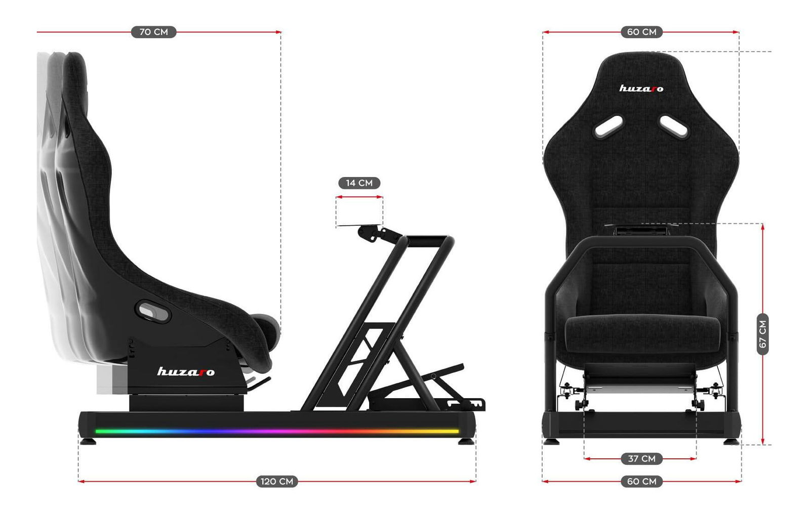 Ergonomická židle vám poskytne maximální komfort, takže hra může trvat spoustu hodin. Navíc, nastavitelné panely řazení a volantu vám umožní přizpůsobit rám různým typům závodů – od tradičních rally až po driftování. Předvrtané montážní body pasují na většinu řadicích pák, pedálů a volantů, včetně Fanatec, Thrustmaster, Logitech Driving Force Fx, Logitech Driving Force Pro, Logitech Driving Force GT a dalších. Pokročilý systém nastavení umožňuje rychlé a intuitivní nastavení rámu podle vašich individuálních potřeb.1. Sedadlo: sklopné od - 6 do + 6 stupňů. Možnost posunutí sedáku dopředu a dozadu.