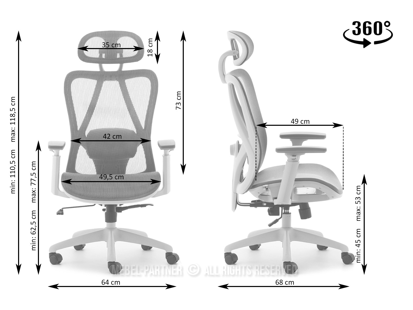 houpací funkce, otočné sedátko, centrální základna s kolečky, nastavitelná Výška, nastavitelné područky ano, nastavitelná opěrka hlavy
