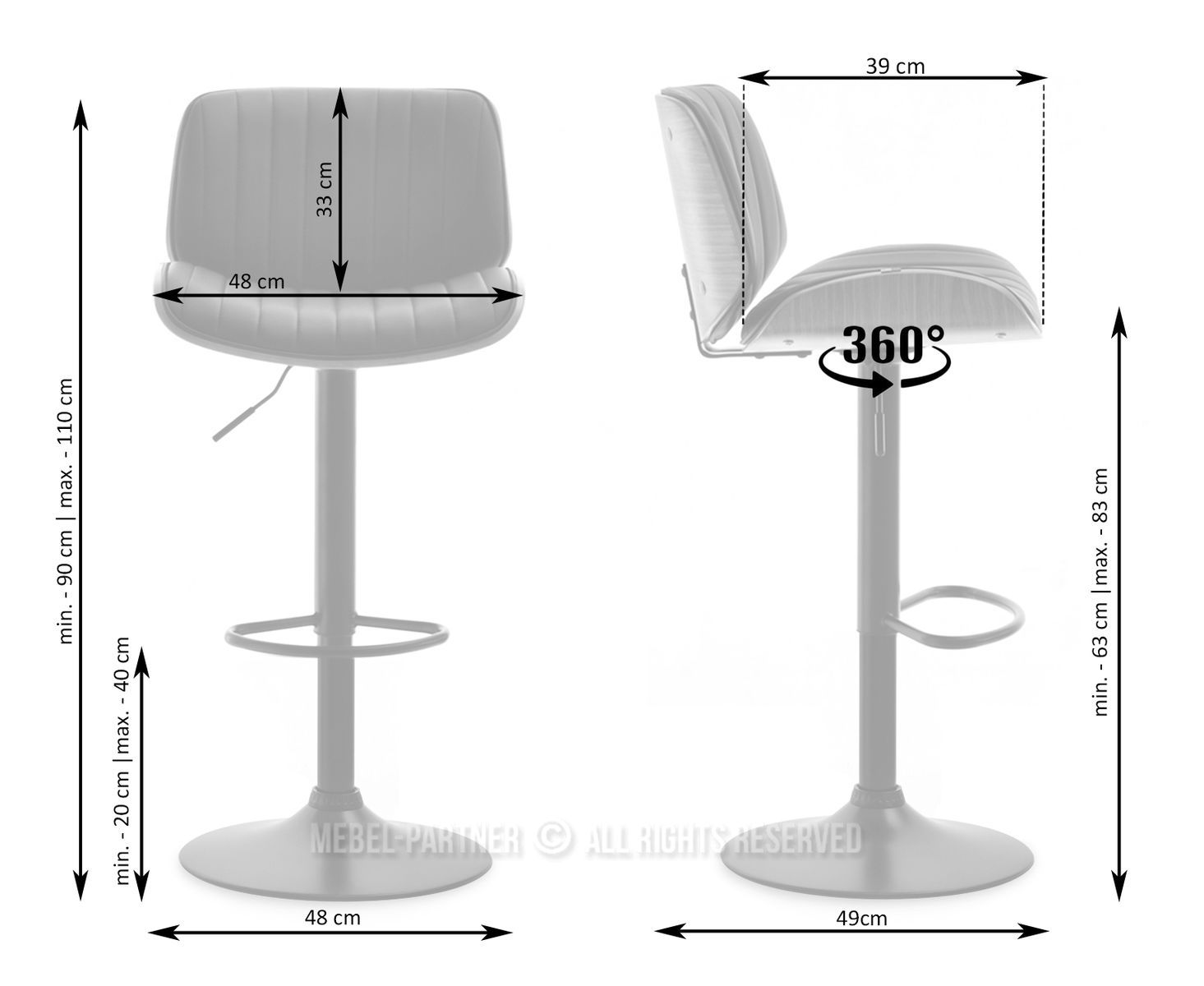 otočné sedátko, opěradlo ano, základna centrální noha, područky ne, nastavitelná Výška