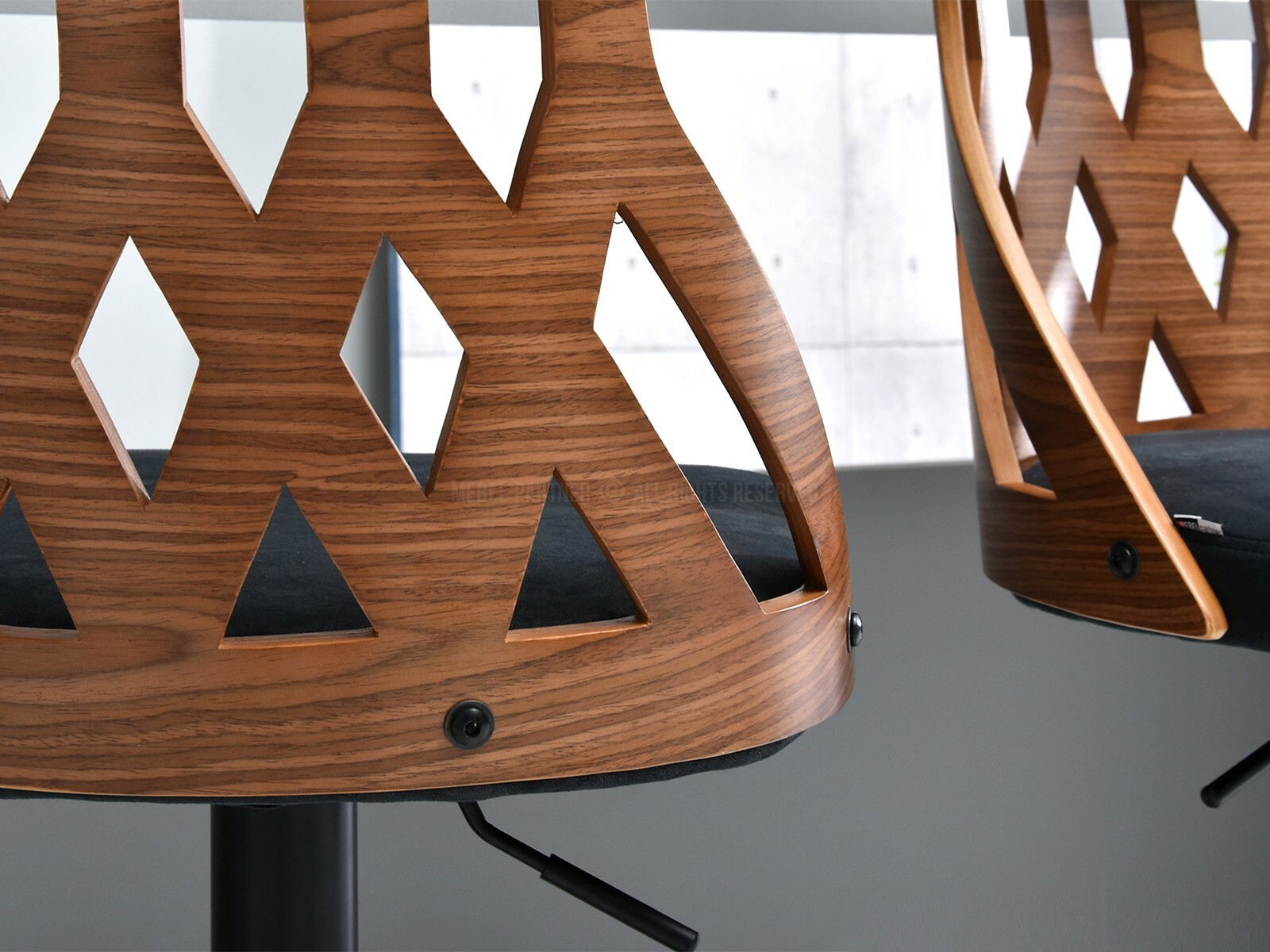 zádová opěrka ano, područky ne, otočný sedák, nastavitelná Výška, základna centrální noha, prolamované
