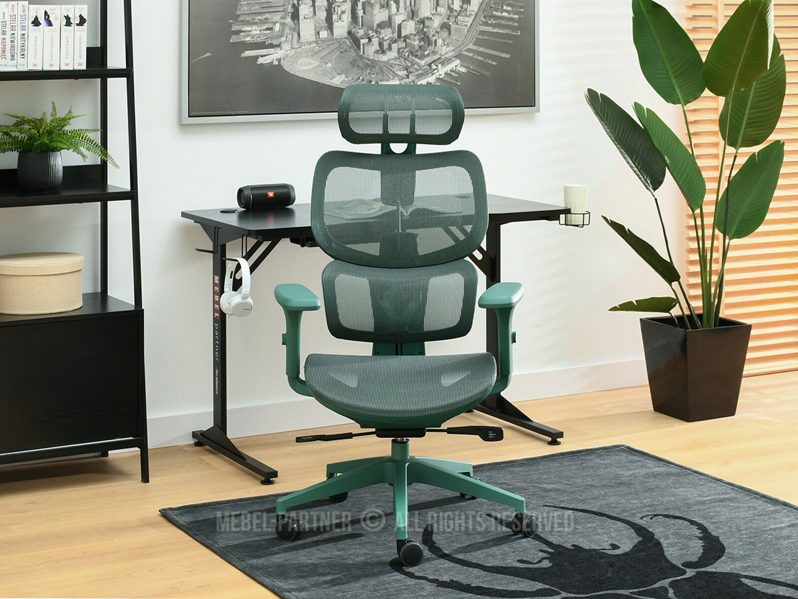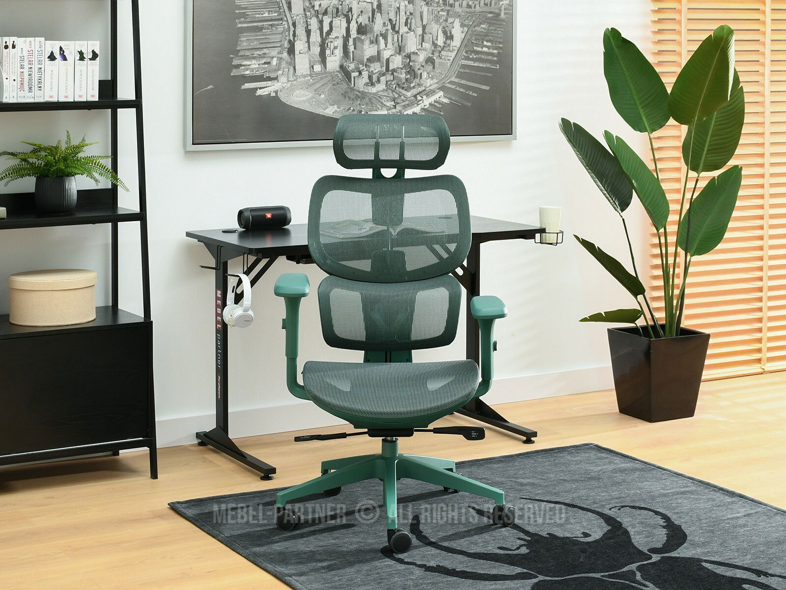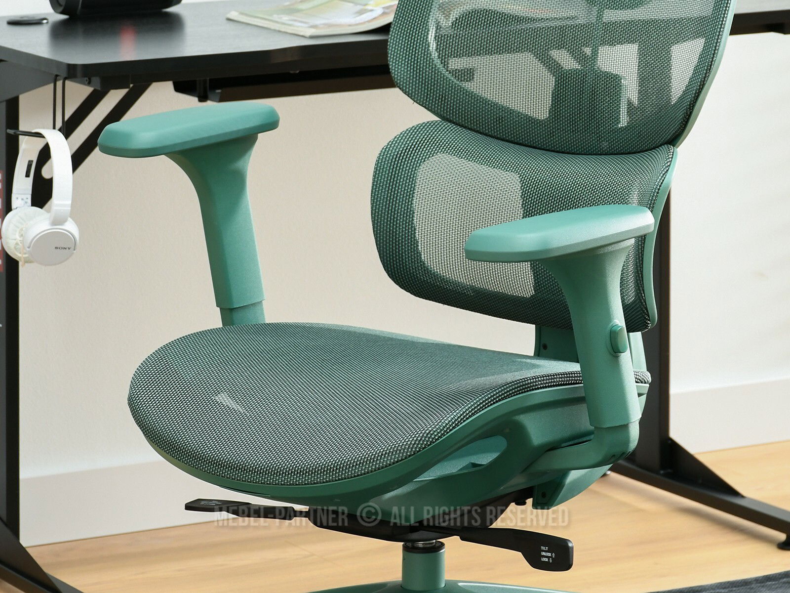 houpací funkce, otočné sedátko, područky ano, centrální základna s kolečky, nastavitelná Výška, opěrka hlavy ano, nastavitelné područky ano