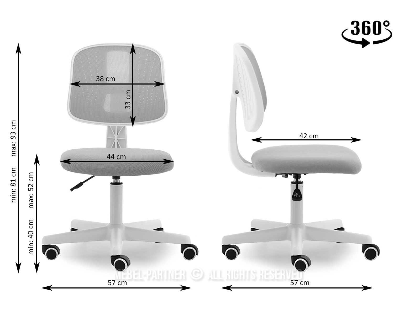 otočné sedátko, středová základna s kolečky, nastavitelná Výška, opěrka hlavy ne, područky ne, pohyblivé opěradlo