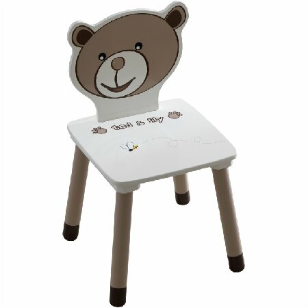 I děti potřebují mít svůj nábytek sladěný a ideálně do stylu pěkné pohádky s medvídkem. Dětská židle má nožičky v čokoládovém odstínu, sedák v bílé barvě s kresbami a opěrku s výřezem hlavičky medvídka / is oušky / pochopitelně v čokoládové barvě.