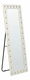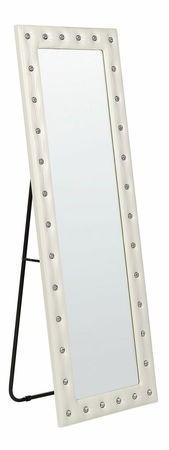Toto stylové stojací zrcadlo promění vaši ložnici v elegantní prostor. Zrcadlo s precizní ruční výrobou je čalouněno kvalitní látkou podobnou umělé kůži, kterou doplňují ozdobné skleněné kamínky. Stane se okouzlující dekorací jakékoli místnosti zařízené ať už v moderním nebo boho stylu. Díky kovovému stojanu jej lze umístit kamkoli. Pomocí háků na zadní straně jej lze horizontálně nebo vertikálně zavěsit i na zeď.