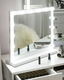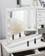 Pokud hledáte elegantní doplněk s okouzlujícím designem, který doplní vaši ložnici nebo koupelnu, toto bílé zrcadlo bude ideální volbou. Usnadní vám ranní rutinu, protože poskytuje příjemné teplé světlo díky kulatým LED žárovkám umístěným na bílém rámu. Stojan je široký a pevný, poskytuje stabilní oporu a zabraňuje převrácení zrcadla.