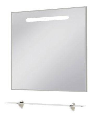 Zrcadlo na stěnu s jednoduchým a moderním designem. Je podsvícené a dodává se s praktickou skleněnou poličkou na odkládání kosmetiky nebo hygienických potřeb.