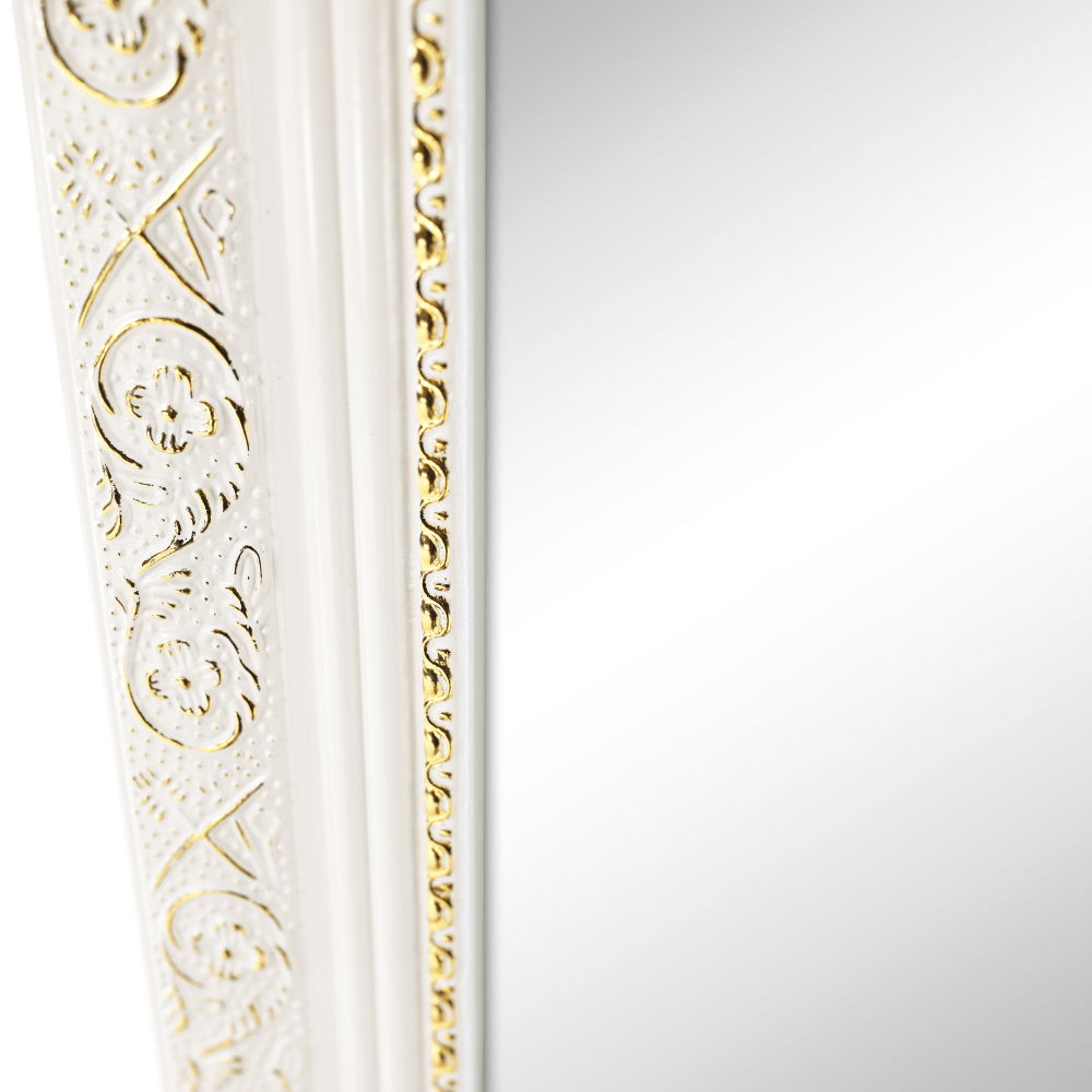 ZobrazitZrcadlo Lalova o výšce 150 cm je ideálním doplňkem do vaší ložnice, obývacího pokoje nebo předsíně. Jeho kovový stojan zajišťuje stabilní polohu a dřevěný rám mu dodává elegantní a designový vzhled. Bílá barva působí velmi čistě a jednoduše, a jeho ornament na rámu je zdoben zlatou barvou, čímž zrcadlo získá ještě více nádherné elegance. Zrcadlo Lalova nádherným způsobem rozzáří každý interiér, do kterého bude umístěno. Jeho materiál tvoří kov a dřevo, což zaručuje vysokou kvalitu a odolnost. S tímto zrcadlem získáte nejen praktický pomocník při oblékání, ale také velice vkusný doplněk do vašeho domova.