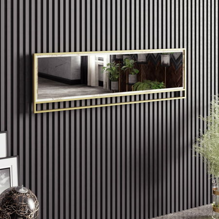 ZobrazitZrcadlo – Poppy je elegantní a moderní kus nábytku, který přinese do vašeho domova stylový dotek. S výškou 37,8 cm a šířkou 121,8 cm je dostatečně velká na to, aby se stalo výrazným prvkem vašeho interiéru. Zlaté a bílé barvy dodávají zrcadlu luxusní a sofistikovaný vzhled. S hloubkou 3 cm je zrcadlo lehké a snadno se namontuje na zeď. Bez ohledu na to, zda jej umístíte do obývacího pokoje, ložnice nebo vstupní haly, Zrcadlo - Poppy přinese do vašeho domova eleganci a šarm.